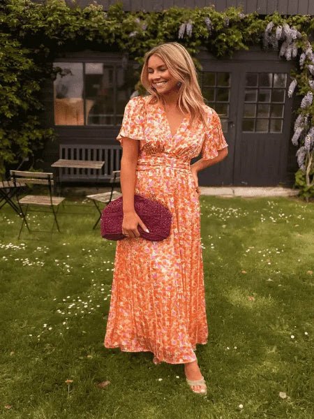 Laila – Ava Maxikjole med V-hals og Blomsterprint
