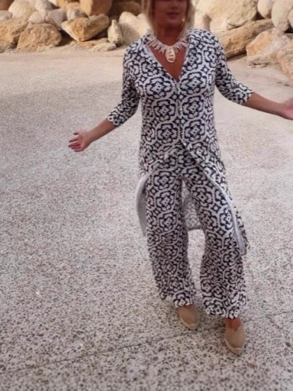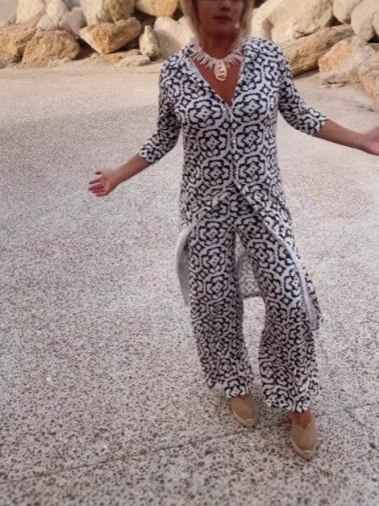 Améliorez votre style avec l'ensemble Manon géométrique élégance, un ensemble captivant qui combine des imprimés audacieux avec une sophistication sans effort. Parfait aussi bien pour les sorties décontractées que pour les rassemblements élégants, cet ensemble vous permettra de vous démarquer avec élégance.